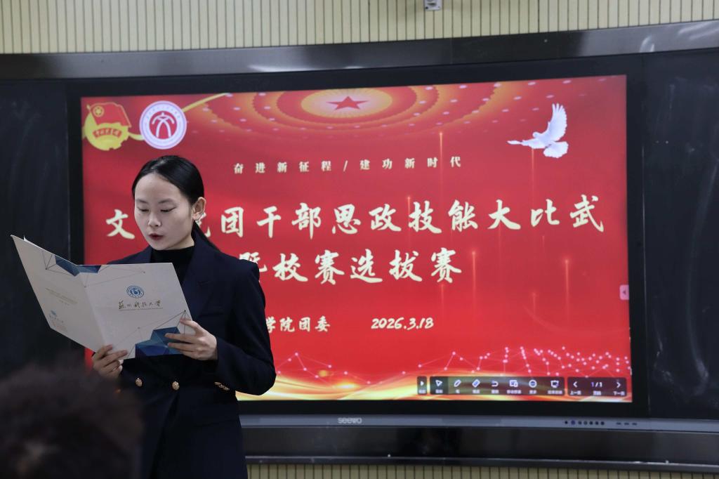 以思想铸魂,以技能立身。本次思政技能大比武既是对团干部理论素养与履职能力的一次集中检阅,也是促进交流学习、提升综合能力的重要平台。文学院将以此次比赛为契机,持续加强队伍建设,引导团干部们坚定理想信念、提升能力本领,在服务同学、奉献社会的实践中不断书写青春答卷。