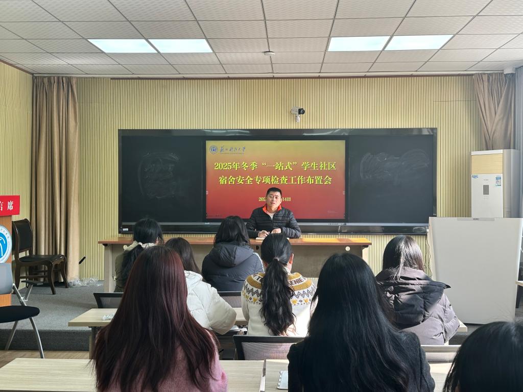冬日渐深,安全为基。为全面落实学校2025年冬季“一站式”学生社区宿舍安全专项检查工作要求,文学院于11月14日召开宿舍安全专项检查工作布置会,活动由学工办主任孙佳明主持,文学院学生骨干参会。