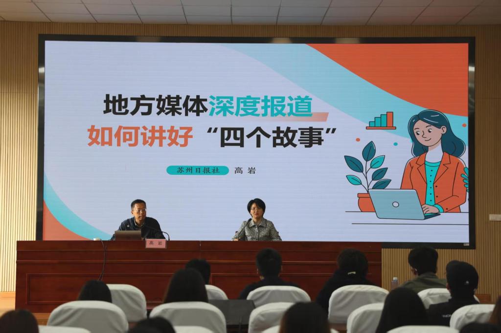 10月22日,苏州日报报业集团副总编辑高岩应邀做客文学院“希文论坛”,开展了以“地方媒体深度报道如何讲好‘四个故事’”为主题的讲座。讲座由文学院院长助理陈小燕主持。