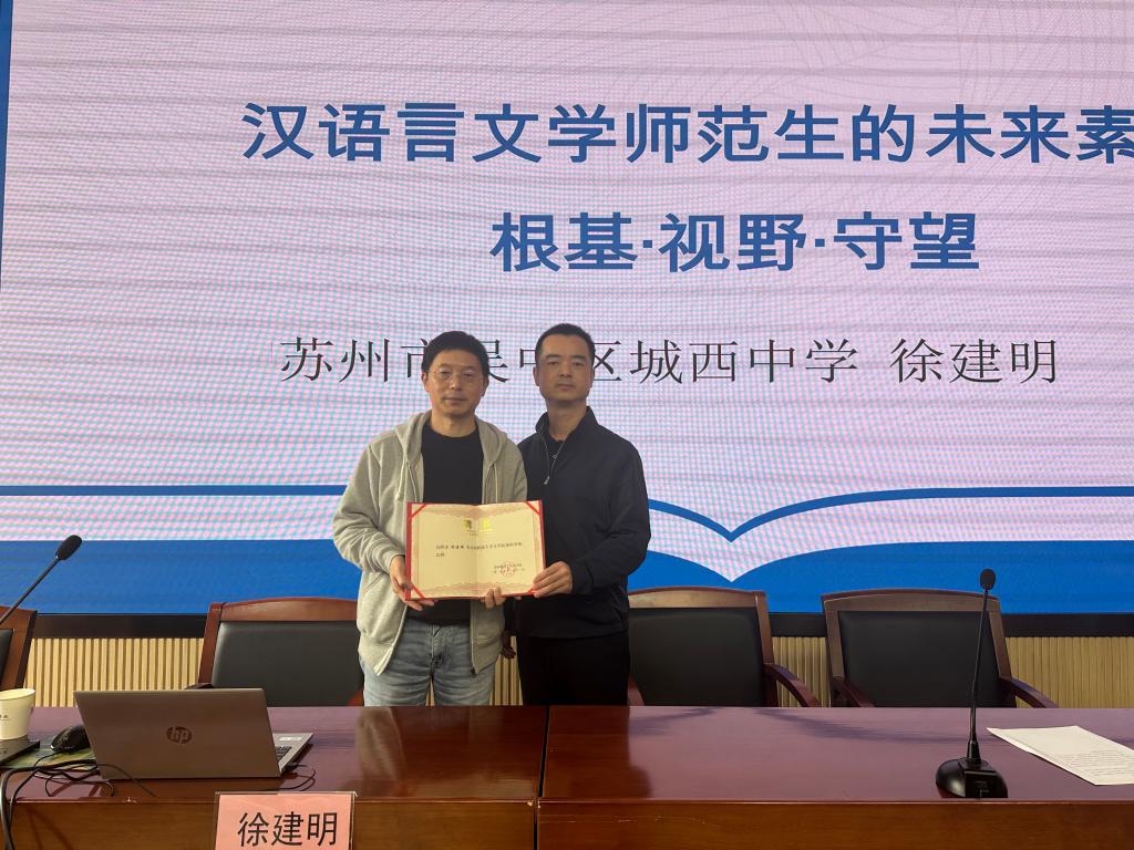 本次讲座让师范生加深了对中学教育现状的了解,明确了师范生本科学习的方向,季海君书记、路海洋院长分别为徐建明、陆泉明颁发了文学院校外兼职导师聘书。