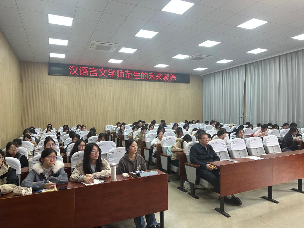 徐建明以《汉语言文学师范生的未来素养:根基、视野、守望》为题,从师范生面试、就业谈起,说明新时代教育的新使命,强调教师要适应未来教育,参与全球竞争合作,重视人的培养,做全球对话的引导者。为此,师范生要重视根基,加强经典的阅读,打通古今,对本国文学的特性要有深刻的理解,才能在世界的文化坐标系中定位中华文化。要借鉴全球最优的教学法,提升教育素养,具备国际视野,成为跨文化的沟通者。要在全球化中锚定中国文化身份,守望人文精神,通过跨文化阅读,培养学生在信息中深度思考。