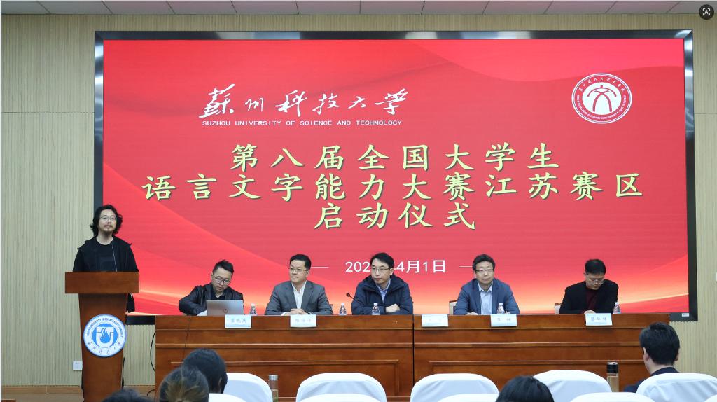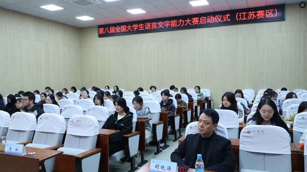 2026年4月1日下午,文学院在教五楼三楼报告厅召开了第八届大学生语言文字能力大赛江苏赛区启动仪式。教务处王军副处长、文学院领导班子、江苏省语言学会代表、部分协办兄弟院校和我校师生代表参加了仪式。