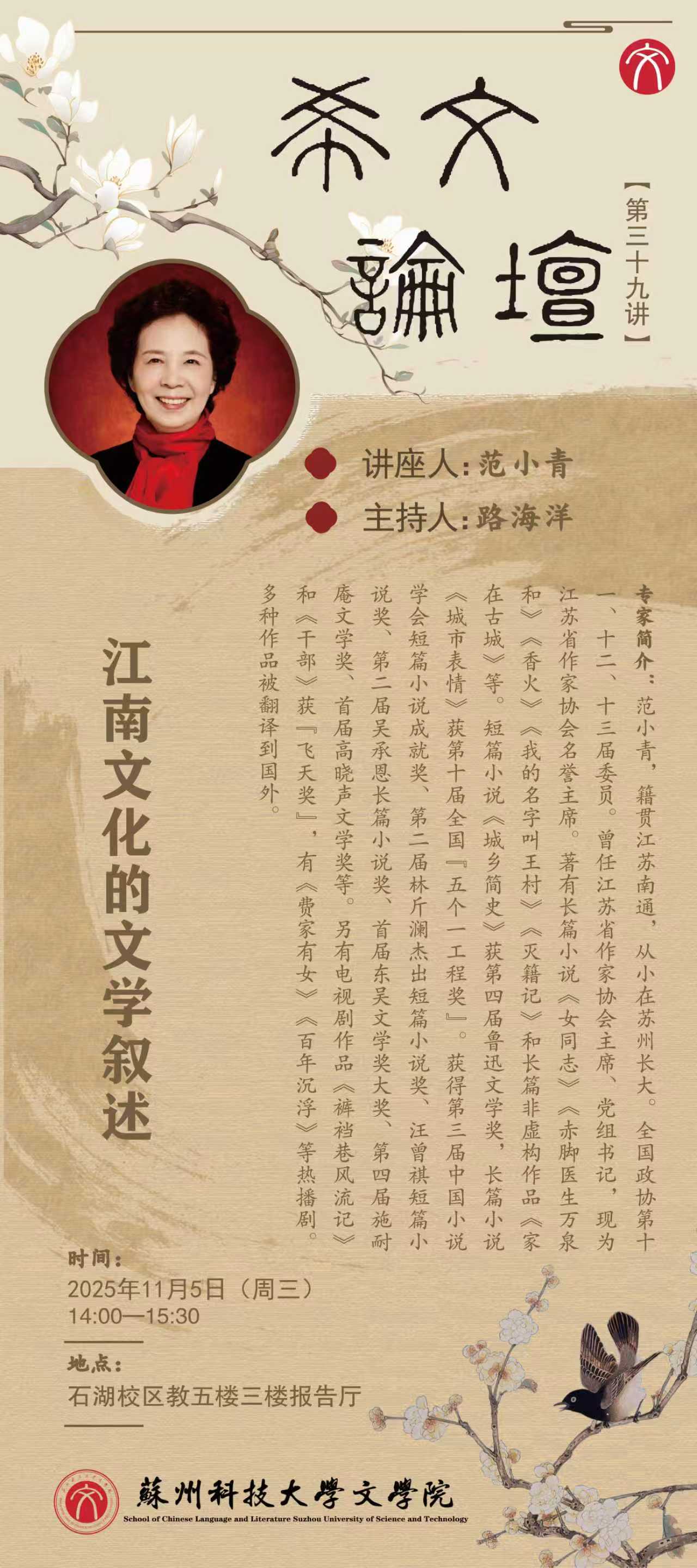 地点:石湖校区教五楼三楼报告厅
