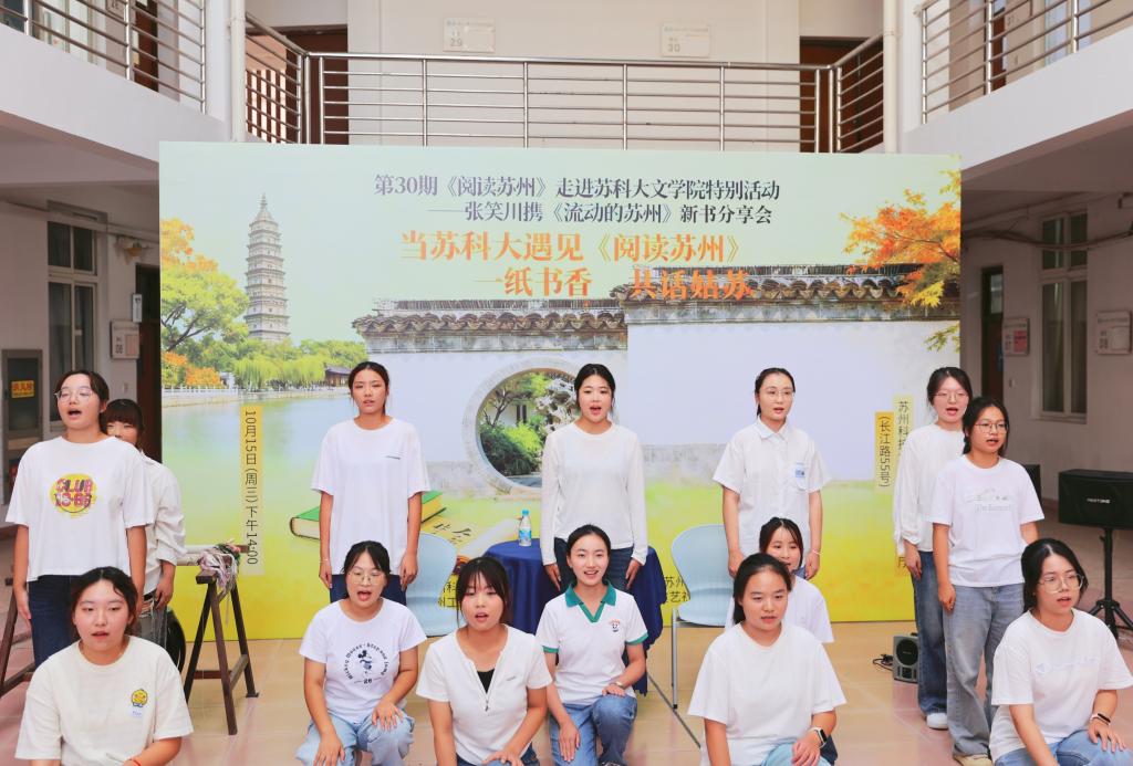 在本次活动中,除了裴琴子老师带来的古琴表演《梅花三弄》,还有文学院合唱团合唱的《茉莉花》以及余祥、金丽萍复刻的《姑苏吆喝》等表演,彰显了苏州文化的极致魅力。最后,全体表演者朗诵《读中国》,展现了文学院优良的学风,为活动画上了圆满的句号。