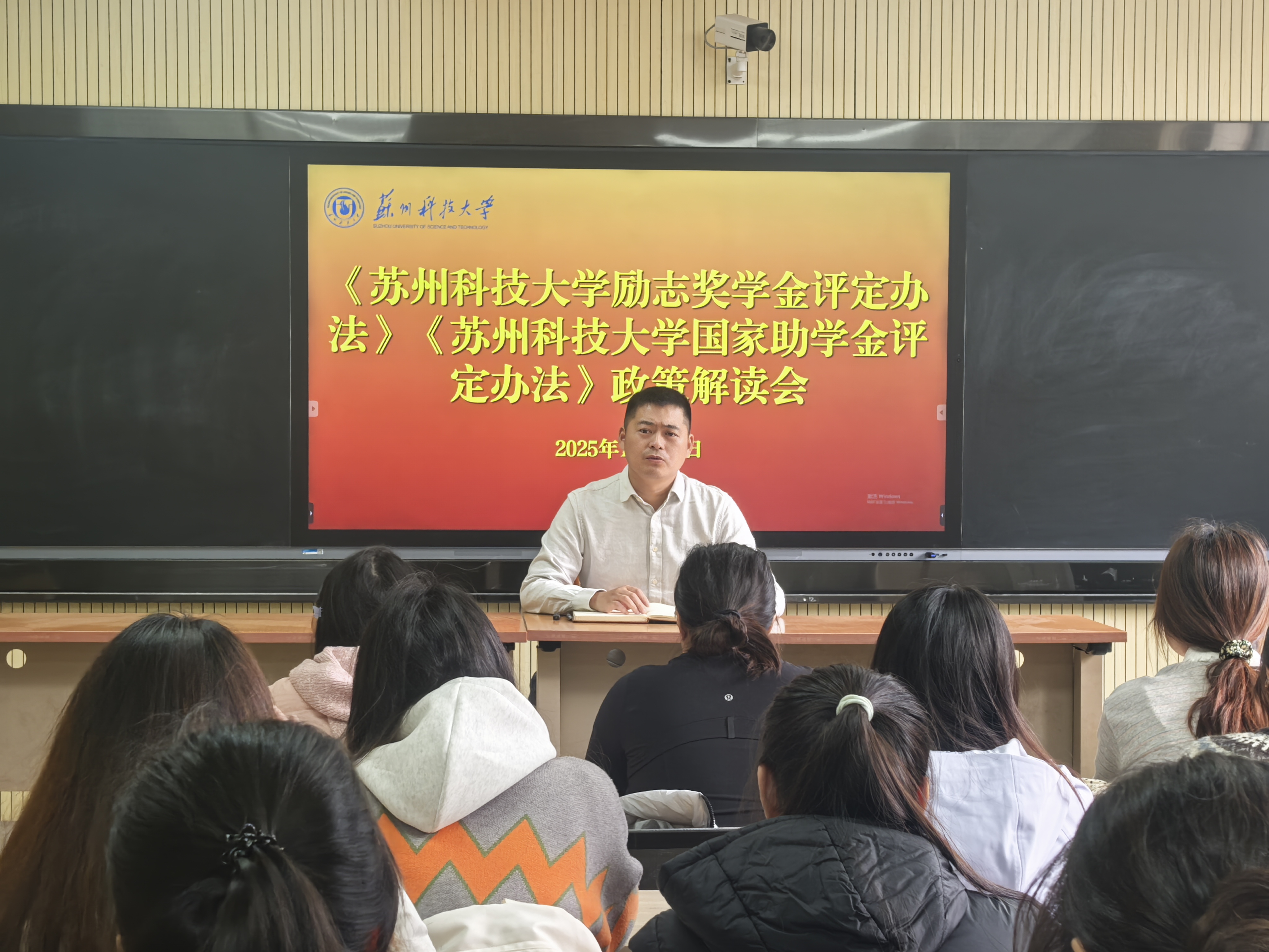 为精准传达学校2025年11月14日下发的《苏州科技大学励志奖学金评定办法》《苏州科技大学国家助学金评定办法》文件精神,确保励志奖学金与国家助学金评定工作规范落地,11月19日下午,文学院举办相关政策解读会,2024级主要班干部参与本次会议,活动由文学院2024级辅导员孙佳明主持。