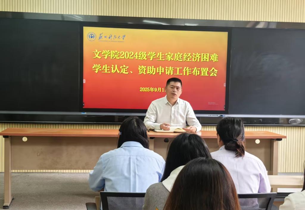 9月17日,文学院2024级家庭经济困难学生认定及资助申请工作布置会在五教103会议室召开。会议由辅导员孙佳明老师主持,2024级全体班长、团支部书记、学习委员、生活委员参加了会议。